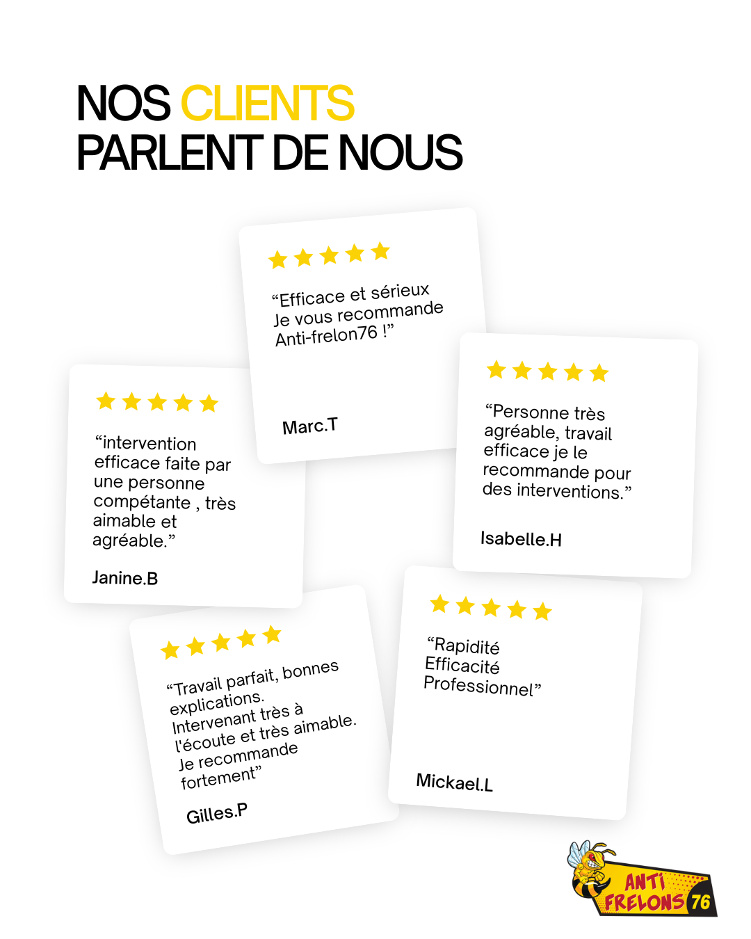 Avis clients Anti-Frelons 76 : votre satisfaction, notre plus belle récompense